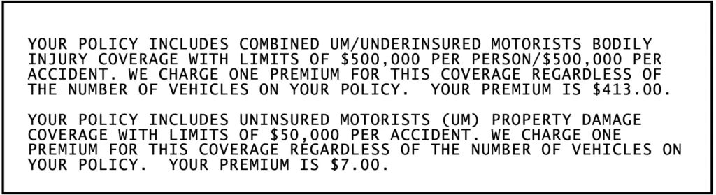 Example of UM/UIM coverage in an auto insurance declaration page